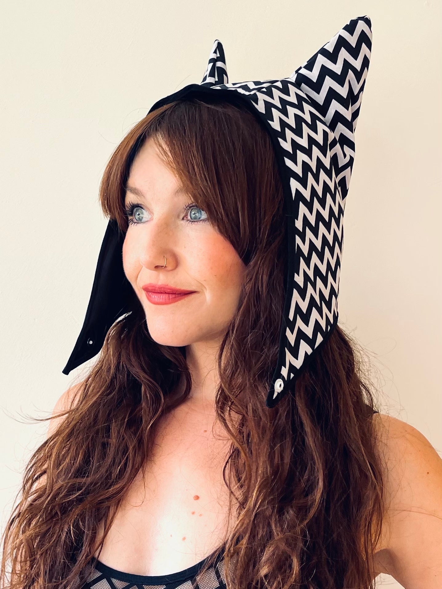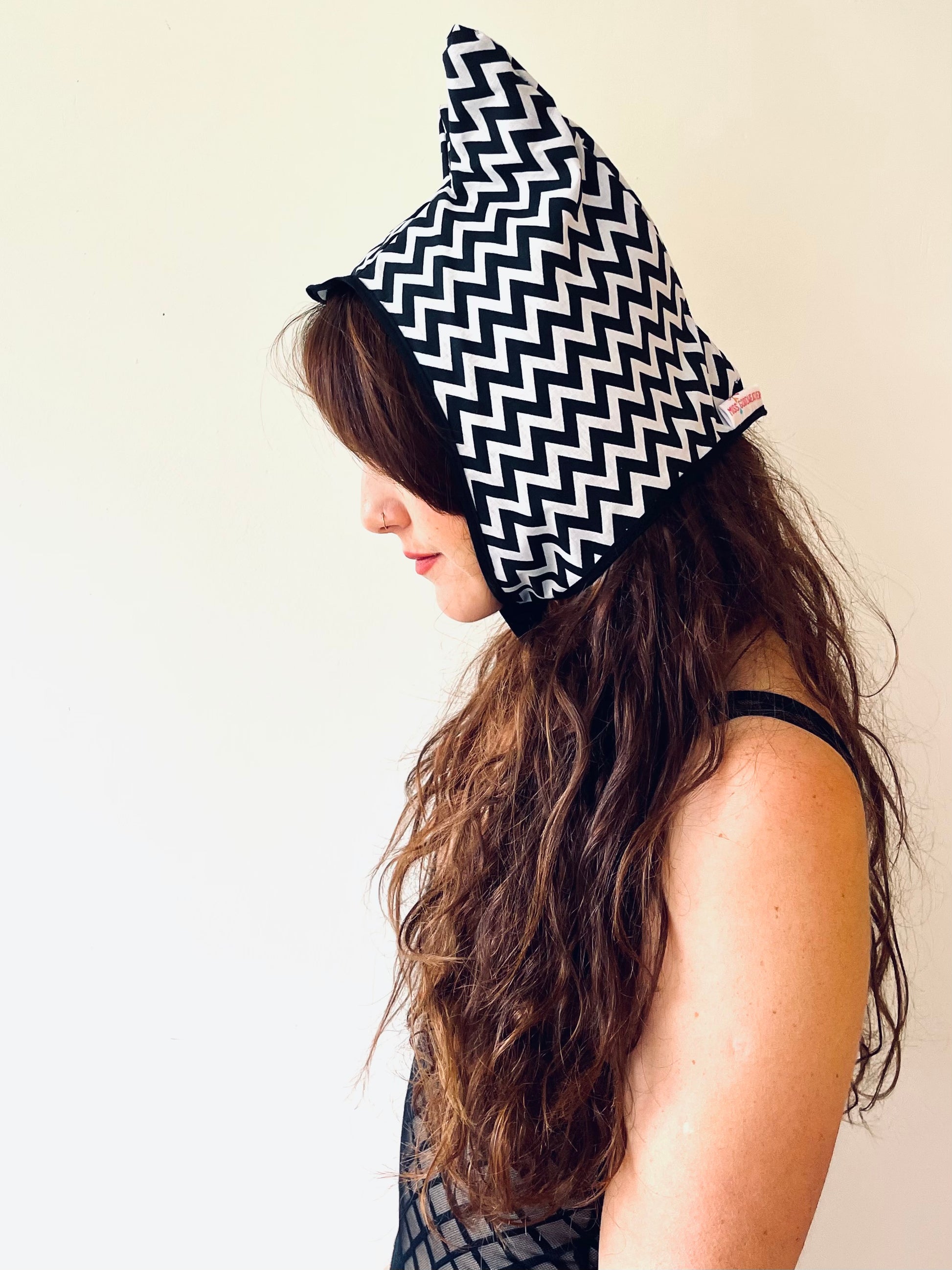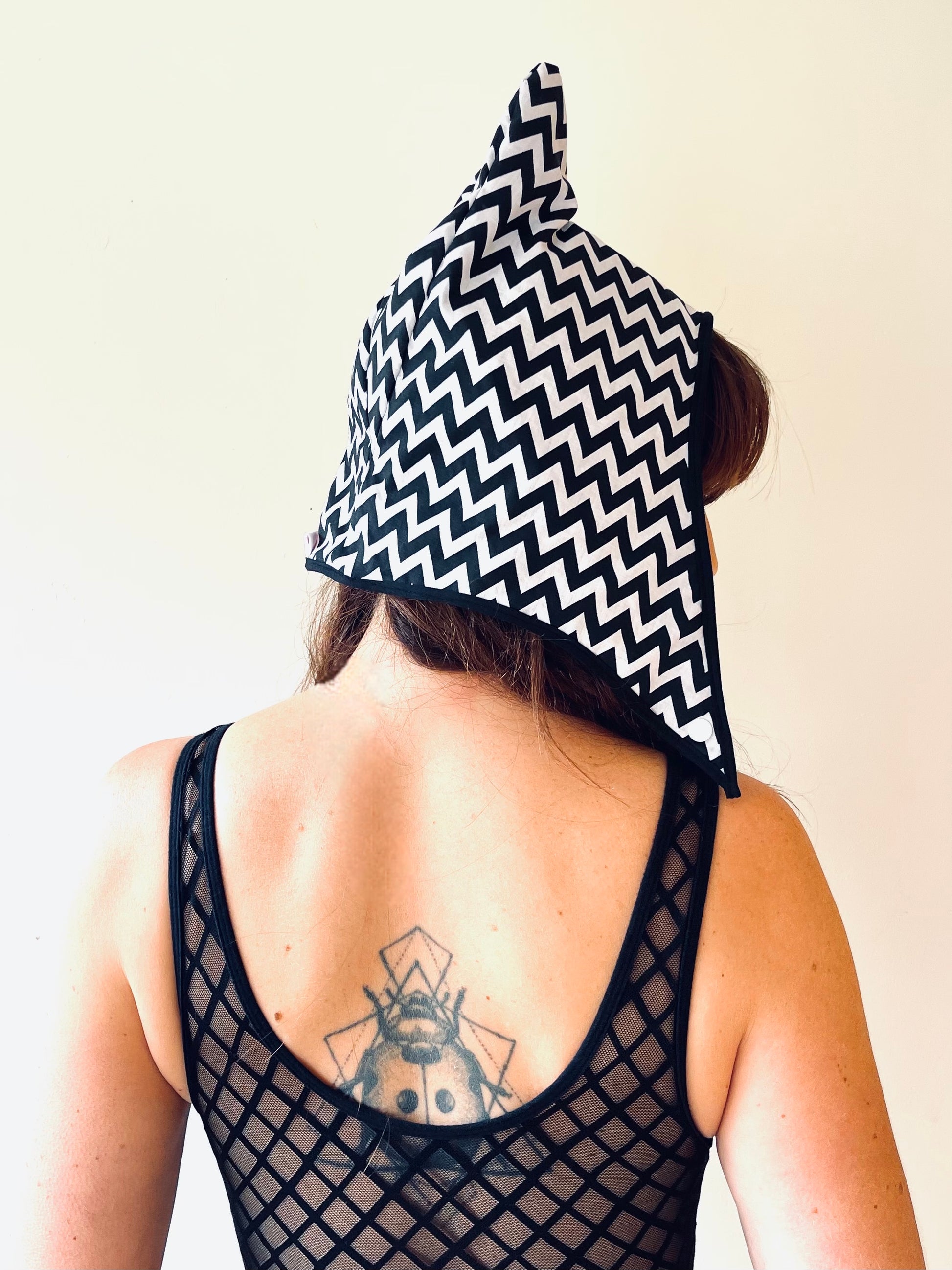 ANIMORPH Hood: Black/ monochrome chevron print (reversible; waterproof)