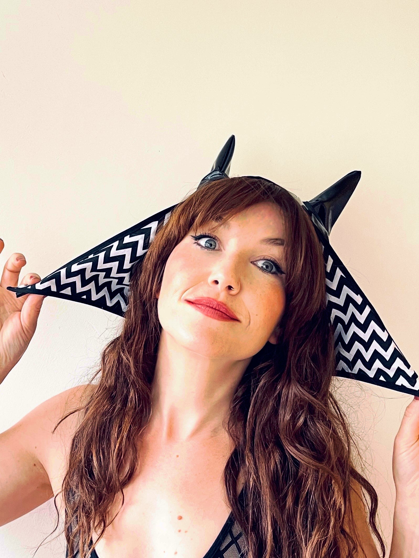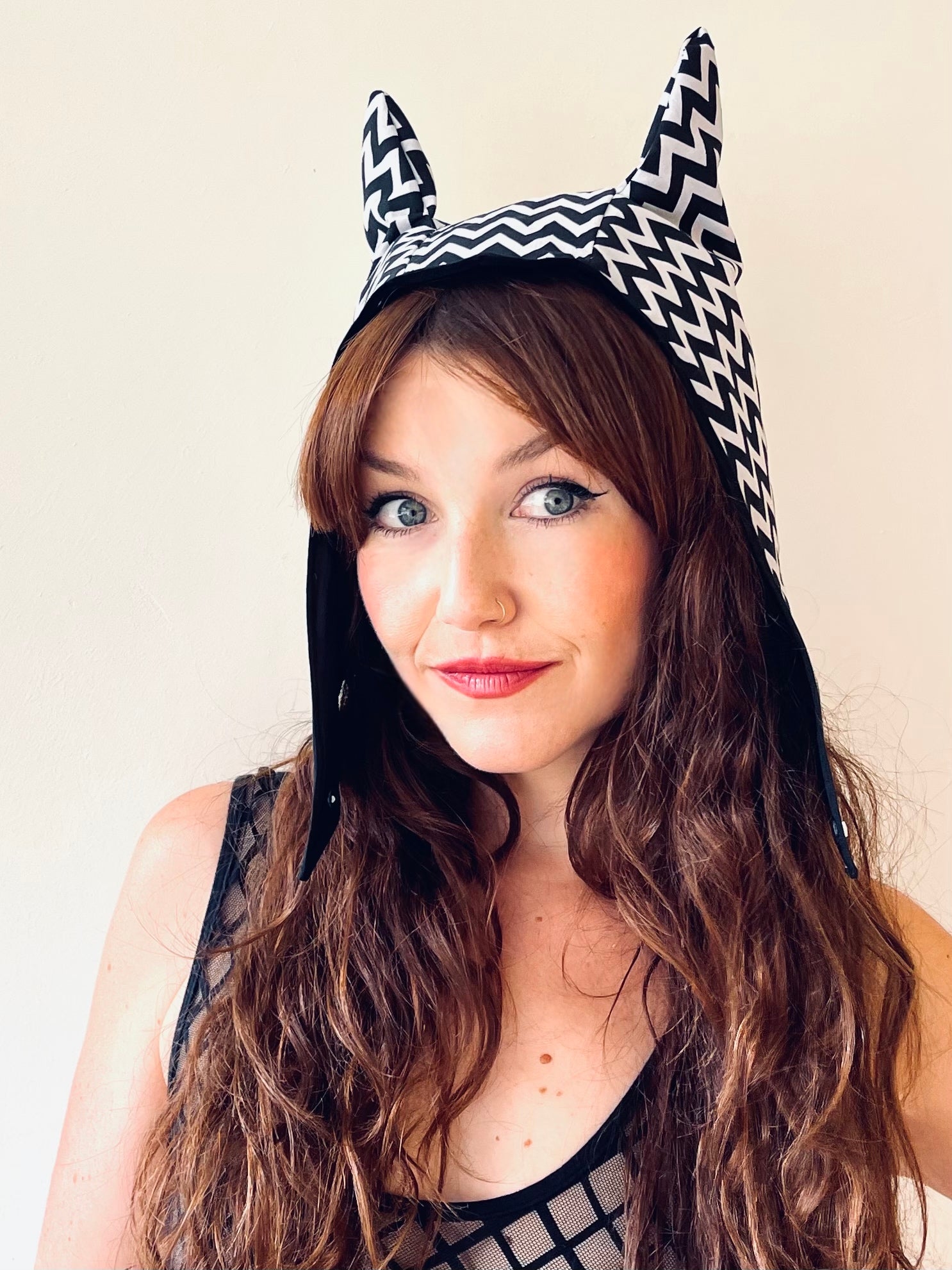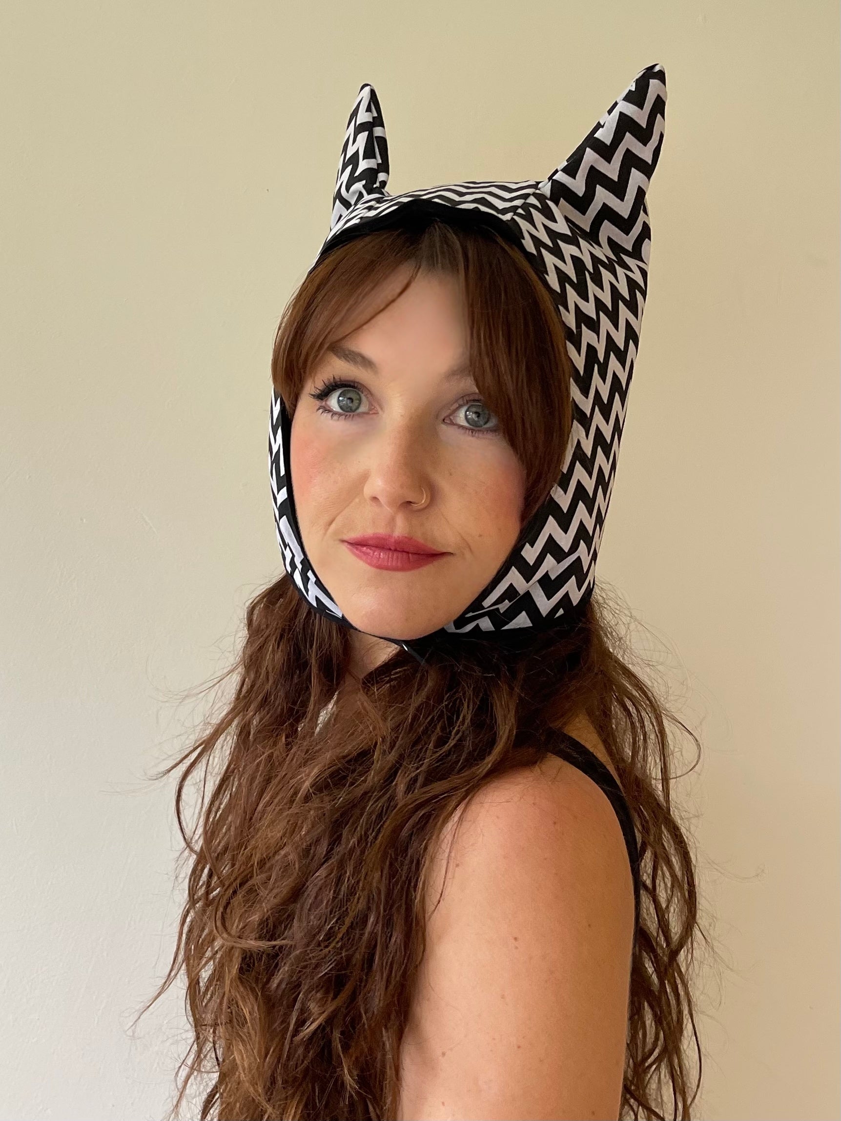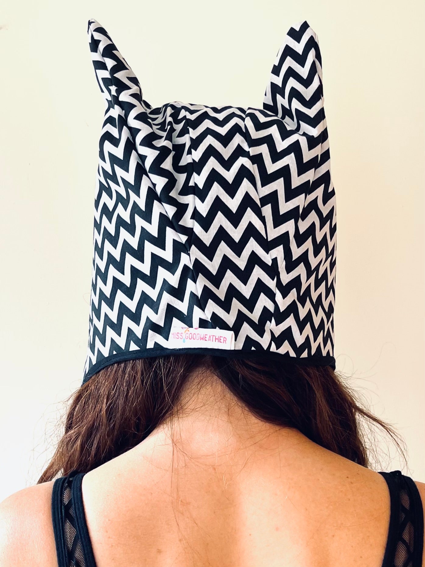 ANIMORPH Hood: Black/ monochrome chevron print (reversible; waterproof)