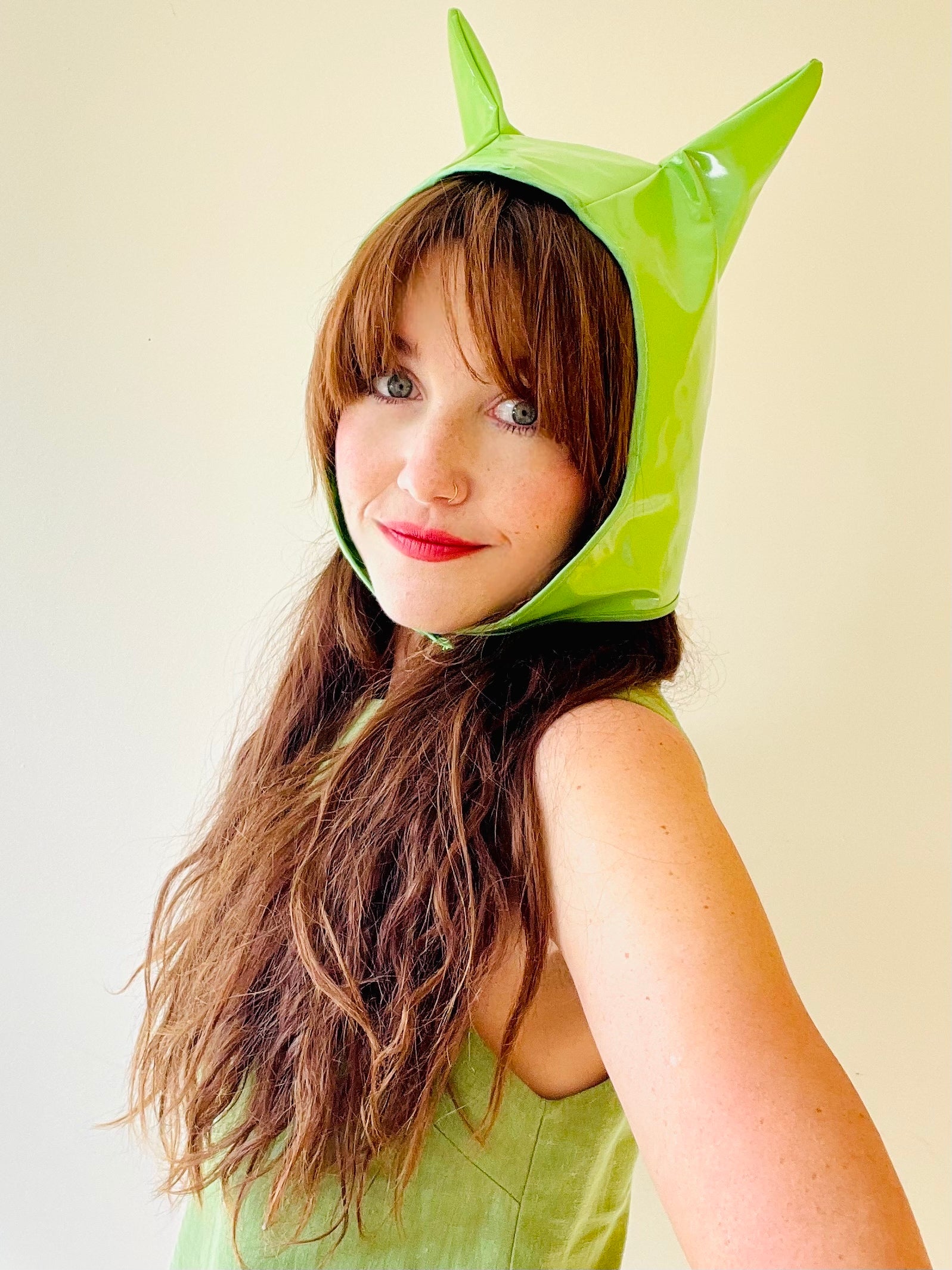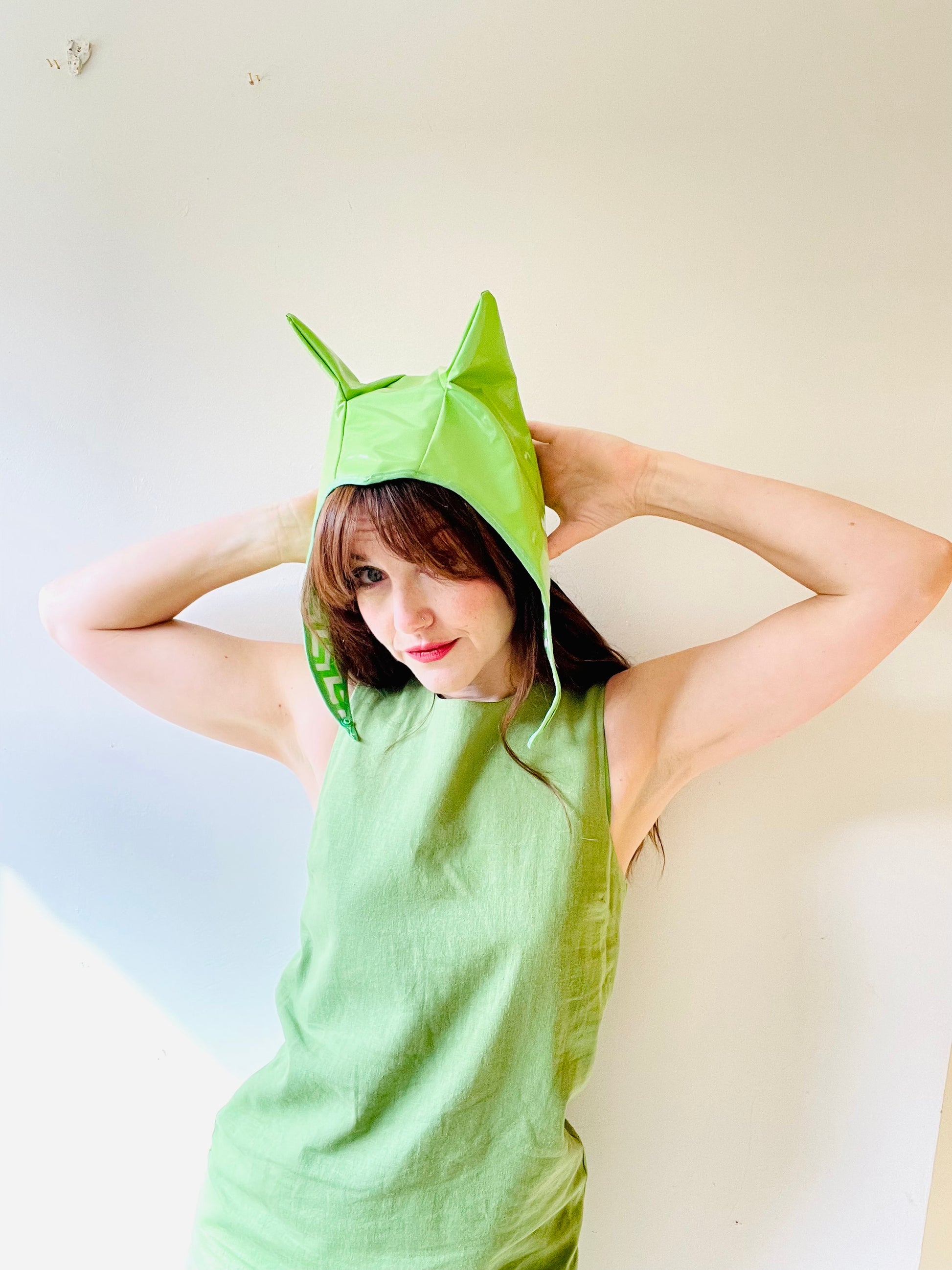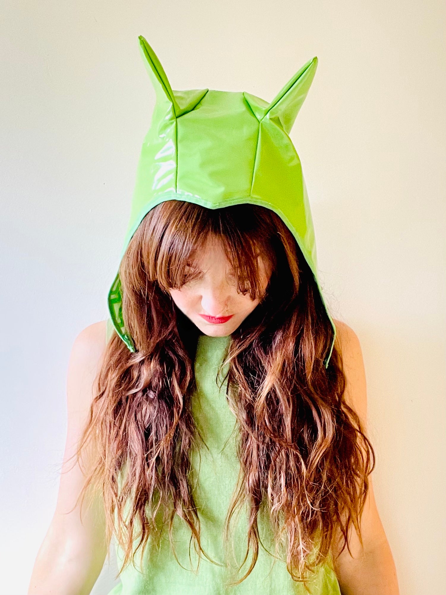 ANIMORPH Hood: Lime green/ lime chevron print (reversible; waterproof)